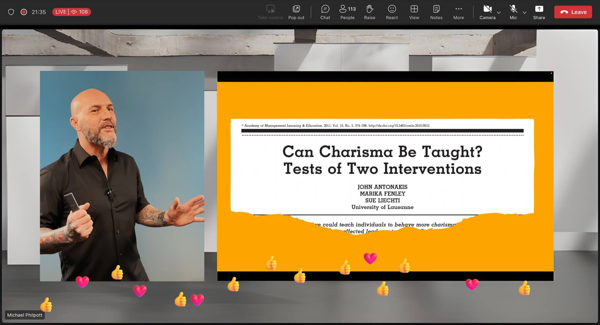 When Michael delivered his first three presentations he lightly touched on the surface of the secret art of speaking, and wanted to know what it was. 25 years later he found the answer, it was three simple words -- Charismatic Leadership Tactics.